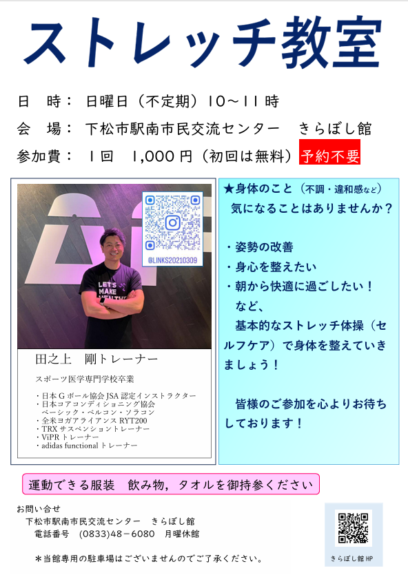 次回開催日 4月16日(木)10:00~11:00 ゆったりヨガ きらぼしホール
