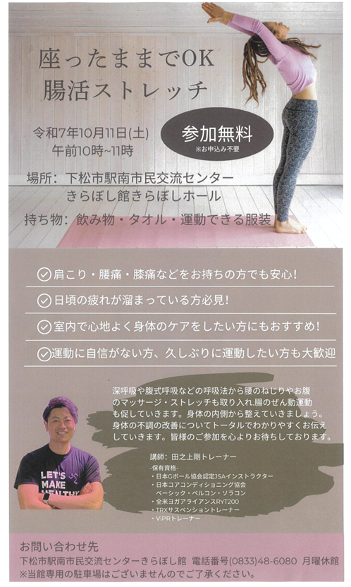 「座ったままでOK 腸活ストレッチ」教室 開催のお知らせ!